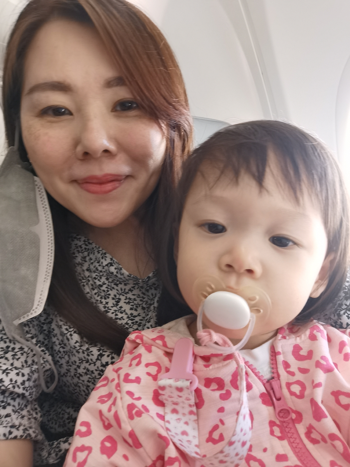 Luckily baby Yvonne spend most of her time sleeping on the plane.